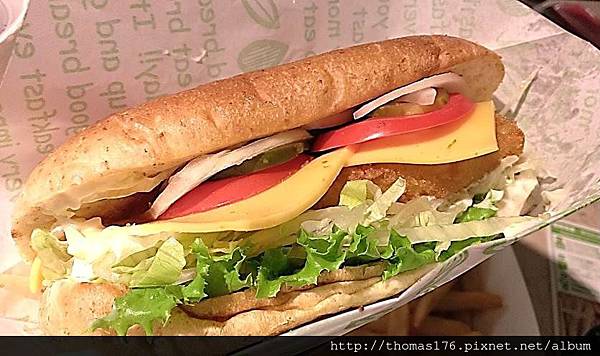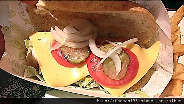 (WOW~有起司片、番茄、小黃瓜、洋蔥、美生菜等。)