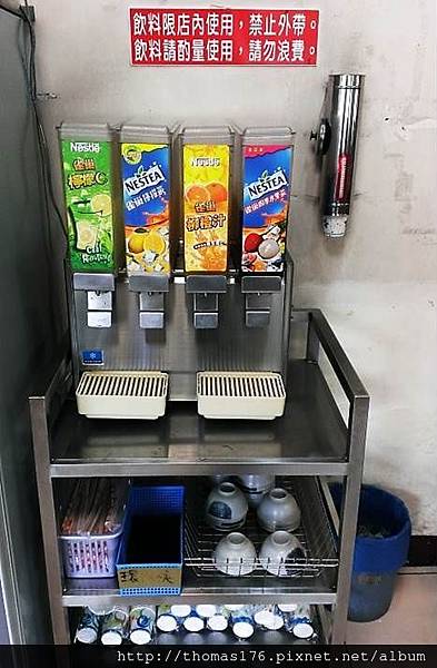一旁有紙杯,飲料自取。