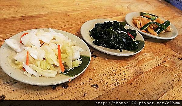湯瑪仕一夥兒人,拿了三盤小菜~泡菜、海帶芽、去骨雞腳。