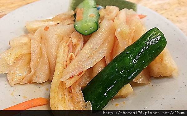 去骨雞腳~不會太過軟爛,滿有嚼勁的,搭配小黃瓜~好吃!