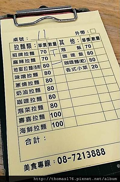 step1:進到店哩,先選擇要吃的拉麵,填寫單子。