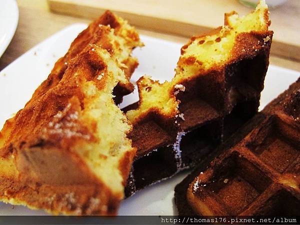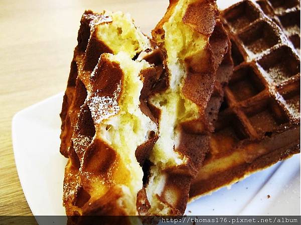 鬆餅外皮酥脆,咬一口以後~裡面卻是軟嫩綿密,