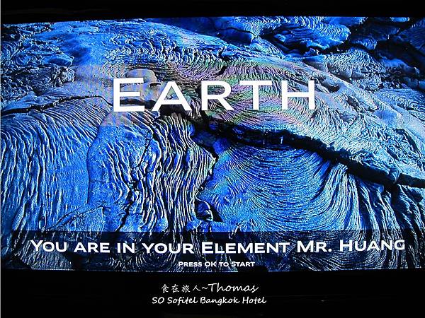 進到房間,電視螢幕顯示住宿主題--EARTH(地),右下角落也表示歡迎入住,還有住房旅客的名字喔!