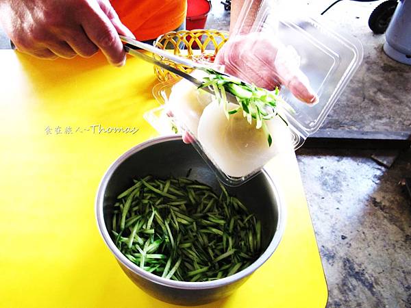 涼肉圓還有搭配小黃瓜絲~可以說是麵粉主食、肉、青菜~通通都有!