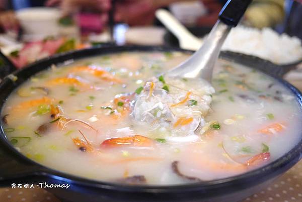 白蝦海鮮粥!!!想不到的美味,圍著桌邊的每位朋友,都已經一碗飯下肚了,還是可以一連吃個兩碗海鮮粥,裏頭的海鮮料新鮮,湯與粥熬的入味,蛤仔好大顆阿~