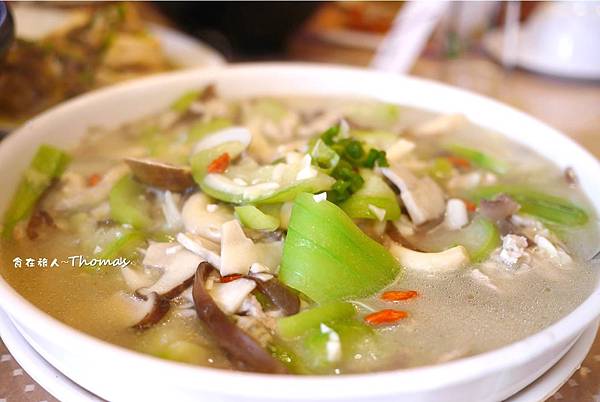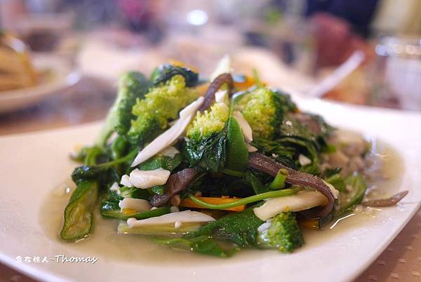 這到時蔬是--綜合時節蔬菜,裏頭有菜瓜、以及大大小小的各種菇類,微微勾芡,品嘗起來沒有負擔。