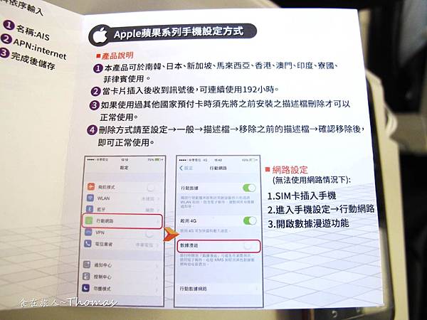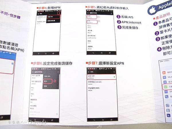 》湯瑪仕鍾愛HTC國產品牌手機,所以示範的開通流程是Android手機APN設定,基本上此款亞洲九國AIS上網卡是隨插隨用,不用特意設定唷,但是如果插卡開機後無法使用,就按照說明說簡易設定就可以使用了。(另外也有iPhone系列手機平板的APN設定流程)