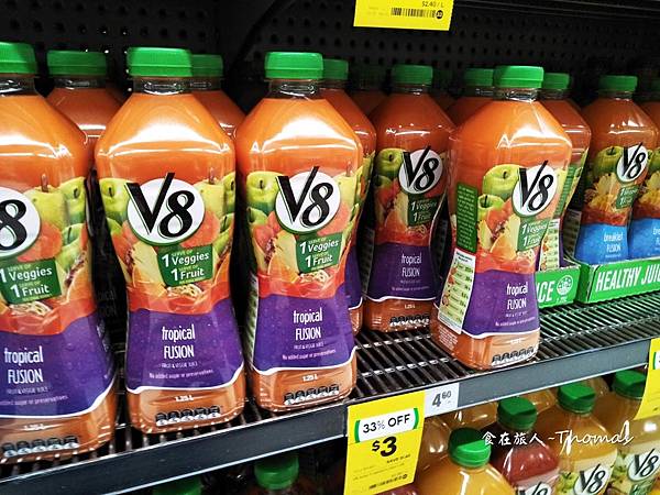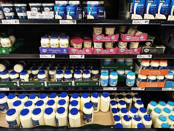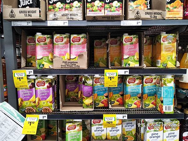 澳洲當地的牛奶、保久乳也是很普遍,價格經濟便宜,喝牛奶可能比喝礦泉水便宜。另外,也有優格可以試試口味。蔬果汁在澳洲也是可以暢飲,因為真的很便宜。