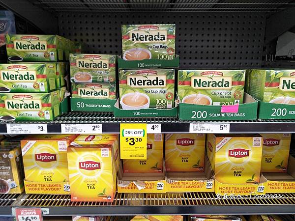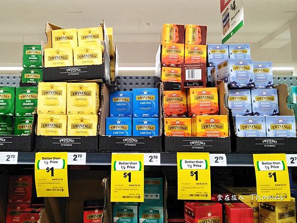 來到澳洲,可能有朋友或假日請你代購茶包,如果剛好遇到量販店促銷特價,這價錢真的會讓人失心瘋阿!TWININGS英國唐寧茶包,可能出現超低特價,送禮自用兩相宜。另外,Nerada有機茶包,可以說是澳洲的代表,包含南非國寶茶、水果茶等等。