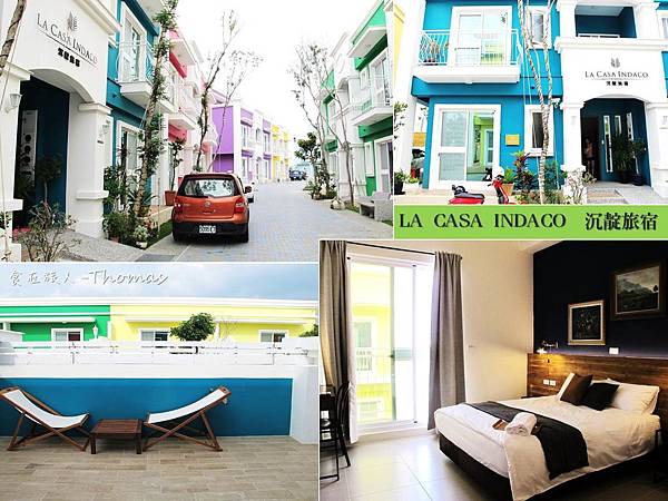 來到恆春小鎮,星巴克、麥當勞轉角後,即可看到前方的彩色夢幻島。LA CASA~在西班牙文、義大利語中是「家」的意思,INDACO是靛藍色的意思。藍綠色的建築外觀,有著南亞風情的渡假感,豐盛的早餐套餐,房內都配備有泡澡浴缸,來「沉靛旅宿」擁有一個輕鬆愉快的住宿體驗。