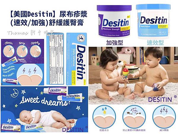 這款美國的Desitin屁屁膏,美國護臀膏,有分兩款:藍色速效型,氧化鋅含量13%;紫色加強型,氧化鋅含量40%。主要用途有助於護理和支持尿布疹,保護因尿布疹而擦傷的皮膚,有助於隔濕。台灣沒有賣,應該是此款氧化鋅含量超過台灣食藥署規定,台灣沒有廠商代理,目前只有去美國才買的到。網評說~此款屁屁高味道有點重,也是目前屁屁膏裡面最濃稠且最防水的。