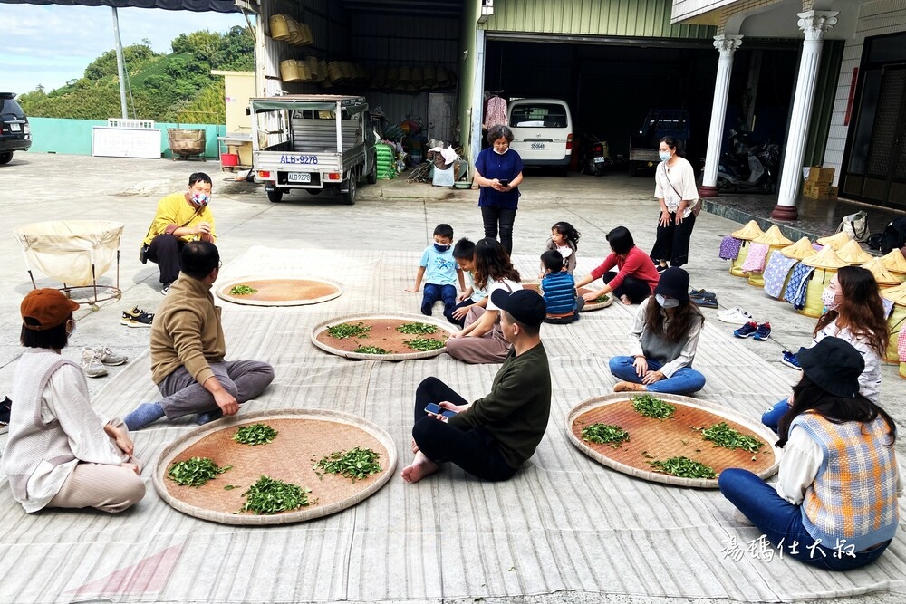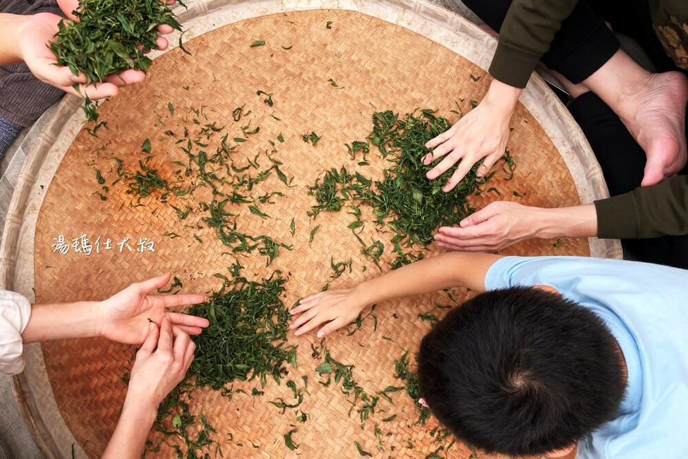 茶體驗很重要的一環,就是製茶體驗,透過一定過程的操作,包含有:採茶、萎凋、發酵、殺菁(炒菁)、揉捻、乾燥、精製、焙火、裝袋等。不同的茶葉有不一樣的操作細節,今天要體驗的揉捻也是非常的重要,紅茶的製成品是條狀的,青茶烏龍茶是球狀的,這都跟揉捻過程有很大的關連性。