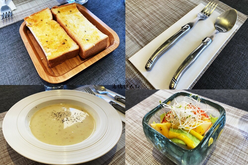 餐廳內提供的餐具都算是有用心挑選過的,麵包有烤過,搭配濃湯一起享用很不錯。
