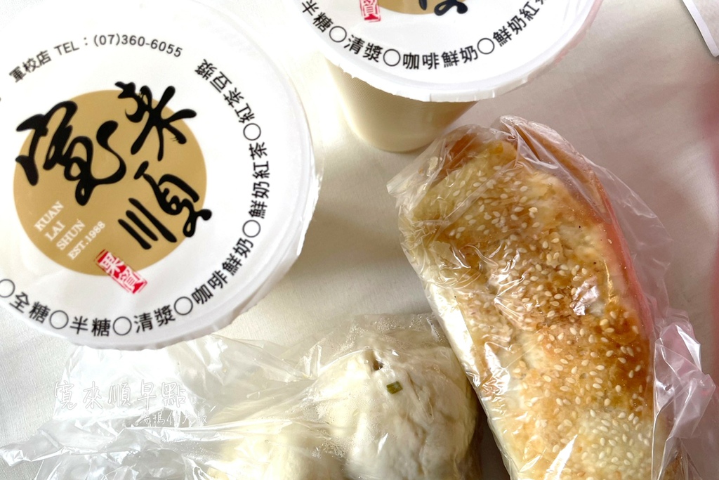 果貿市場美食一籮筐,可以說是高雄重統美食的重要地圖,寬來順早餐店可以內用外帶,等個30分鐘也是很正常,鮮肉包、蛋餅油條、豆漿米漿都是推薦美食。