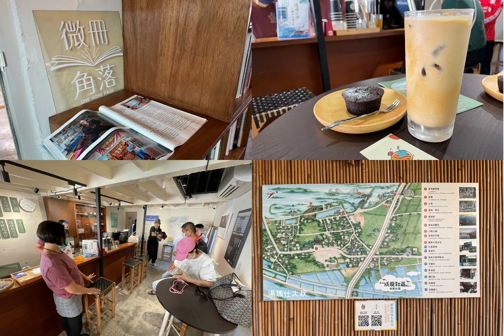 成龍捌貳|成龍社區自主經營的場域,現在的吧檯都是在地青年或是學生,提供一個舒適的休息空間,招牌特色烏魚子司康、黑豆布朗尼,搭配一杯冰拿鐵或是美式咖啡,很悠閒!