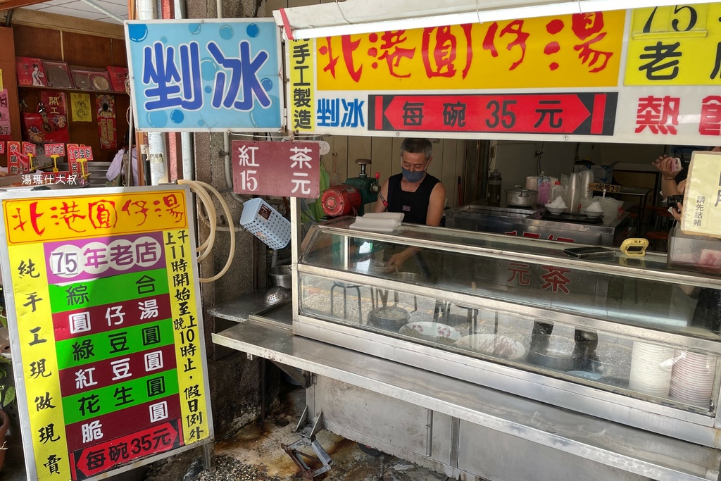 北港圓仔湯|大小剛剛好,位在北港老街上的剉冰店,一碗35元,招牌是紅茶!唉唷~不是啦,湯先生覺得是脆圓,其他就是老闆自己煮的紅豆、綠豆、湯圓,來一碗很消暑。